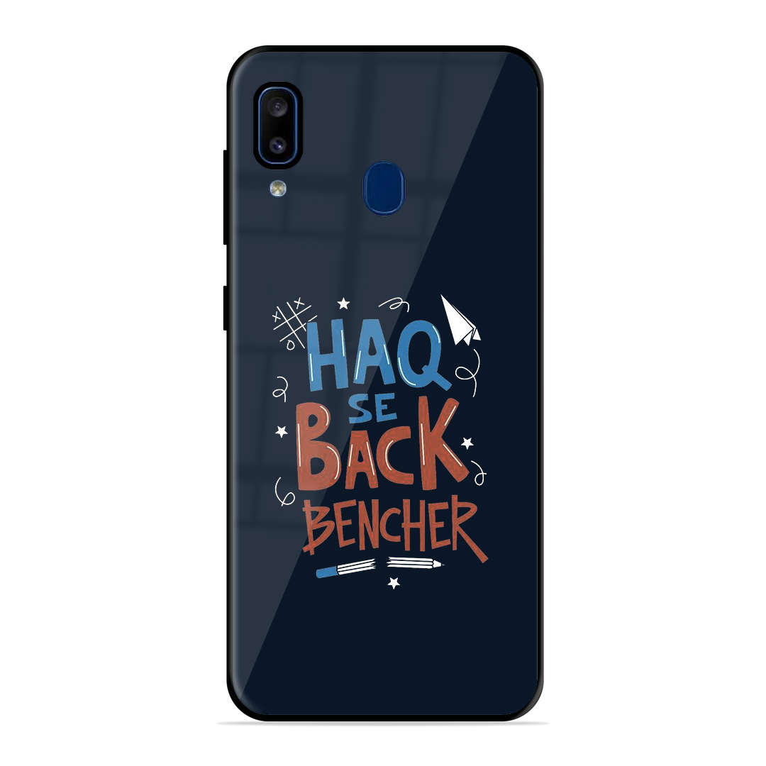 Tempered Glass Coated Metal Back Case for Samsung Galaxy A20 Back Bencher