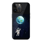 Tempered Glass Coated Metal Back Case for Apple Iphone 14 Pro Max Being Astronaut