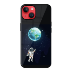 Tempered Glass Coated Metal Back Case for Apple Iphone 14 Being Astronaut