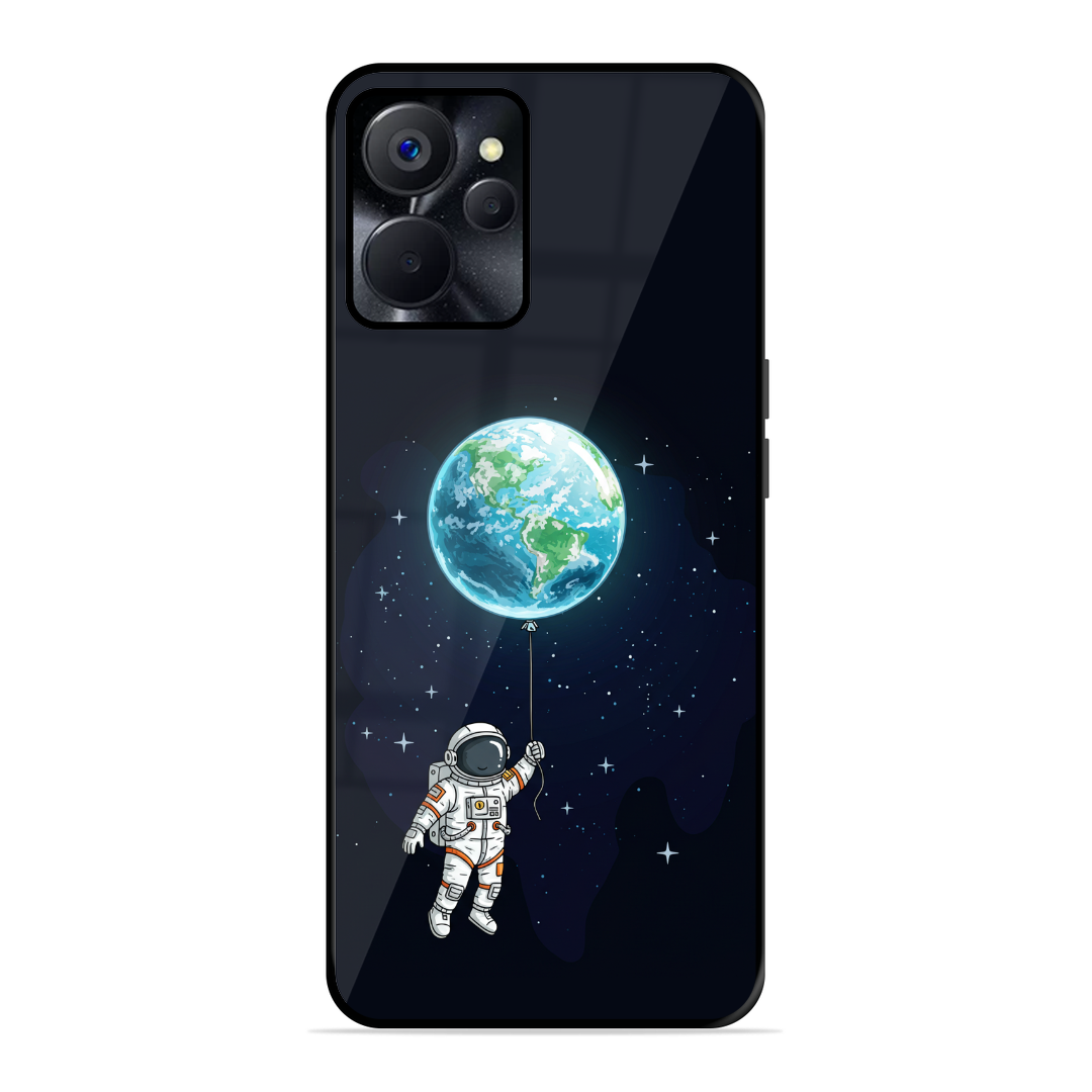 Tempered Glass Coated Metal Back Case for Realme 9I 5G Being Astronaut