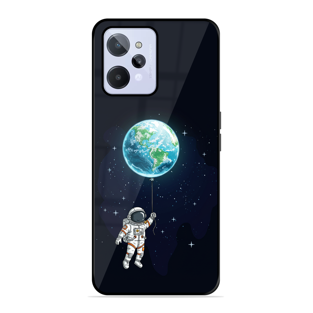 Tempered Glass Coated Metal Back Case for Realme C31 Being Astronaut