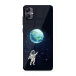 Tempered Glass Coated Metal Back Case for Samsung-Galaxy-A05 Being Astronaut