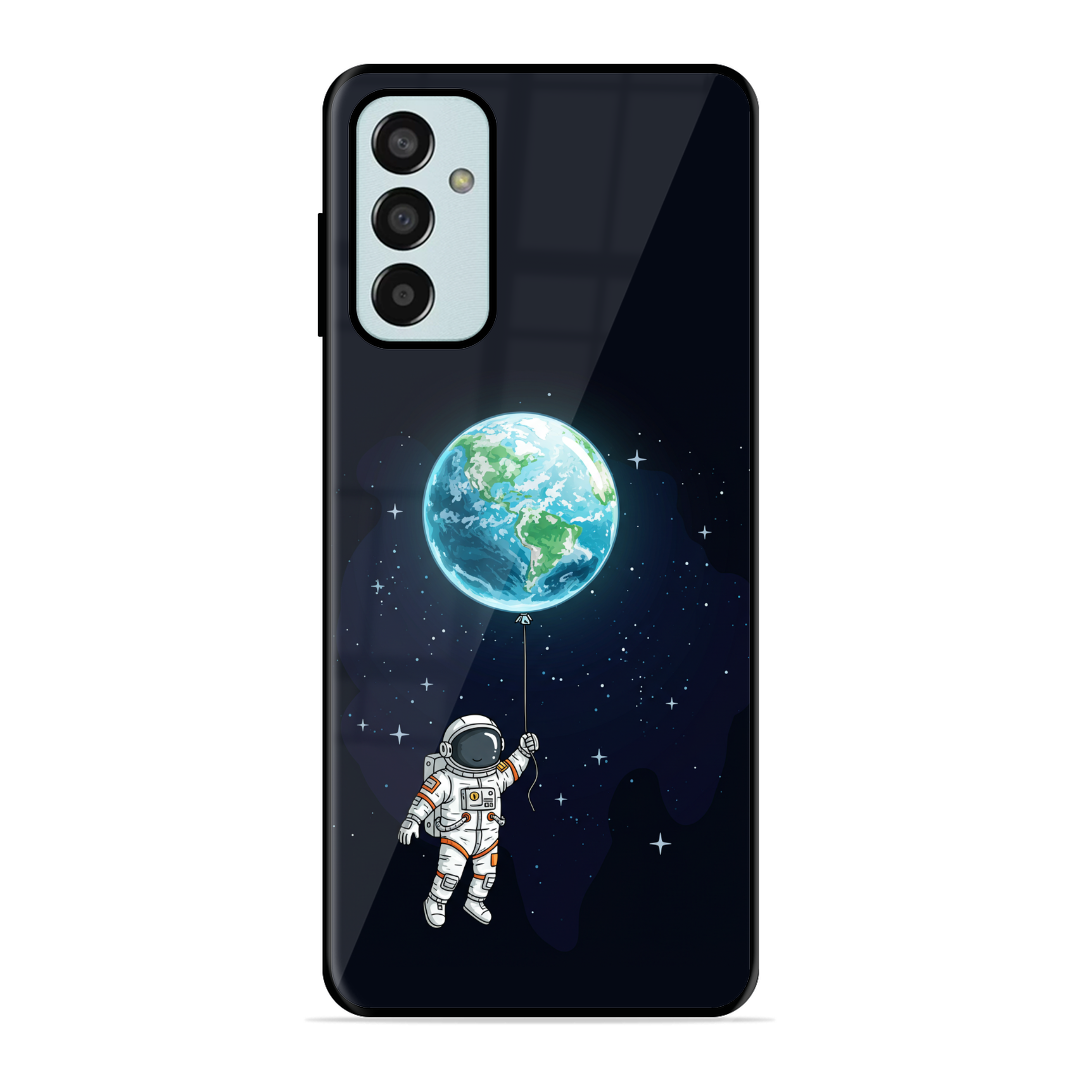 Tempered Glass Coated Metal Back Case for Samsung Galaxy F13 Being Astronaut