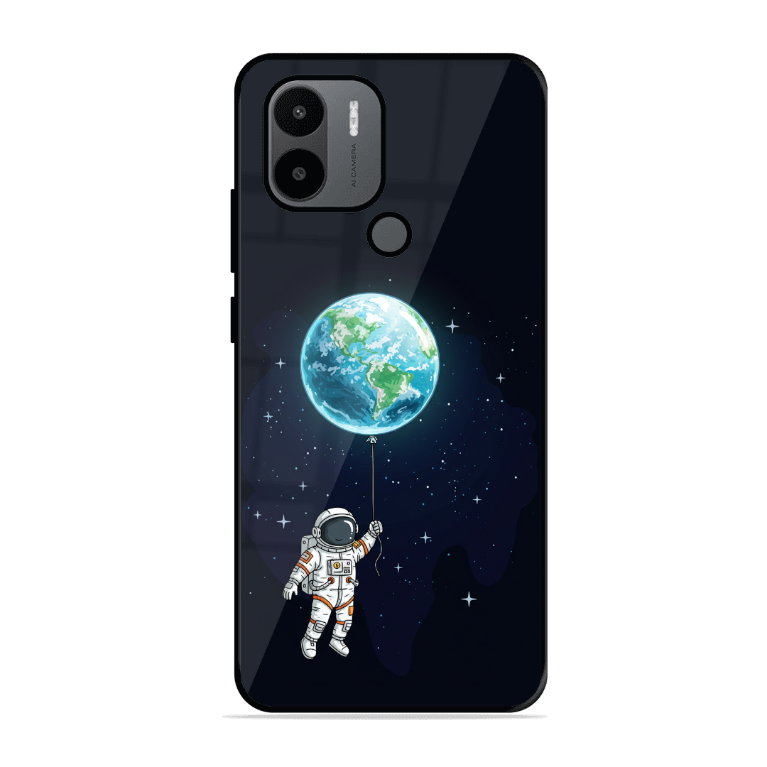 Tempered Glass Coated Metal Back Case for Xiaomi Redmi A2 Plus Being Astronaut