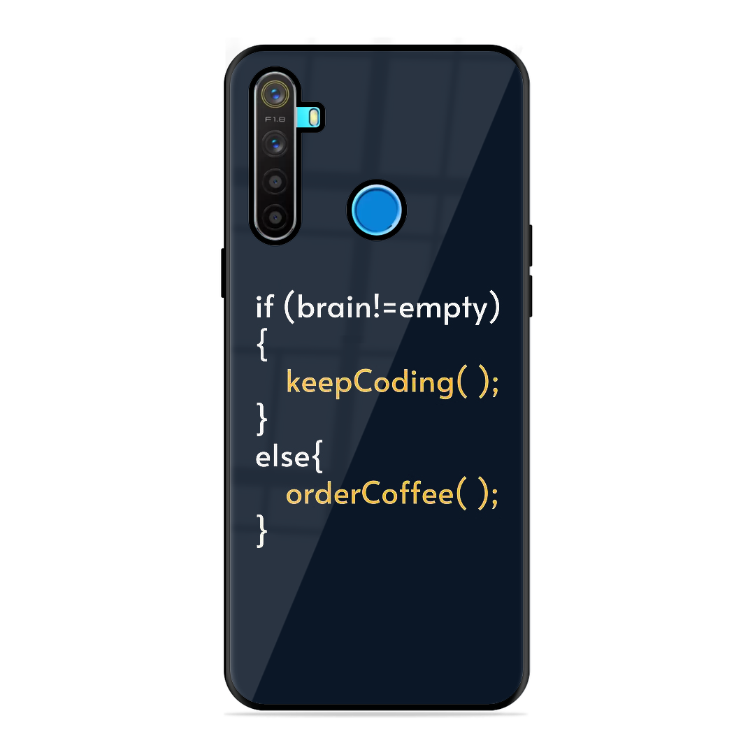 Tempered Glass Coated Metal Back Case for Realme 5 Coding Life