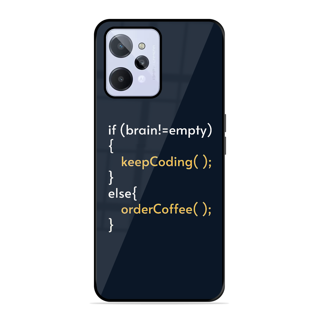 Tempered Glass Coated Metal Back Case for Realme C31 Coding Life