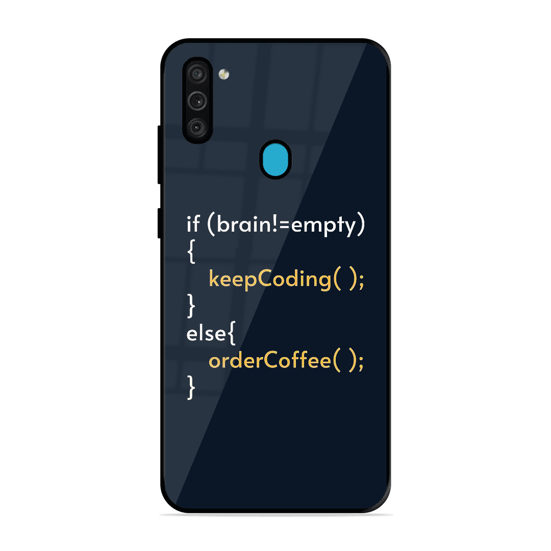Introducing the ultimate fusion of bold design and rugged protection: the Tempered Glass Coated Metal Back Case for {brand} Samsung Galaxy M11 Coding Life. Thoughtfully crafted for those who demand both high performance and high style, this premium case redefines mobile protection with a stunning, custom twist.