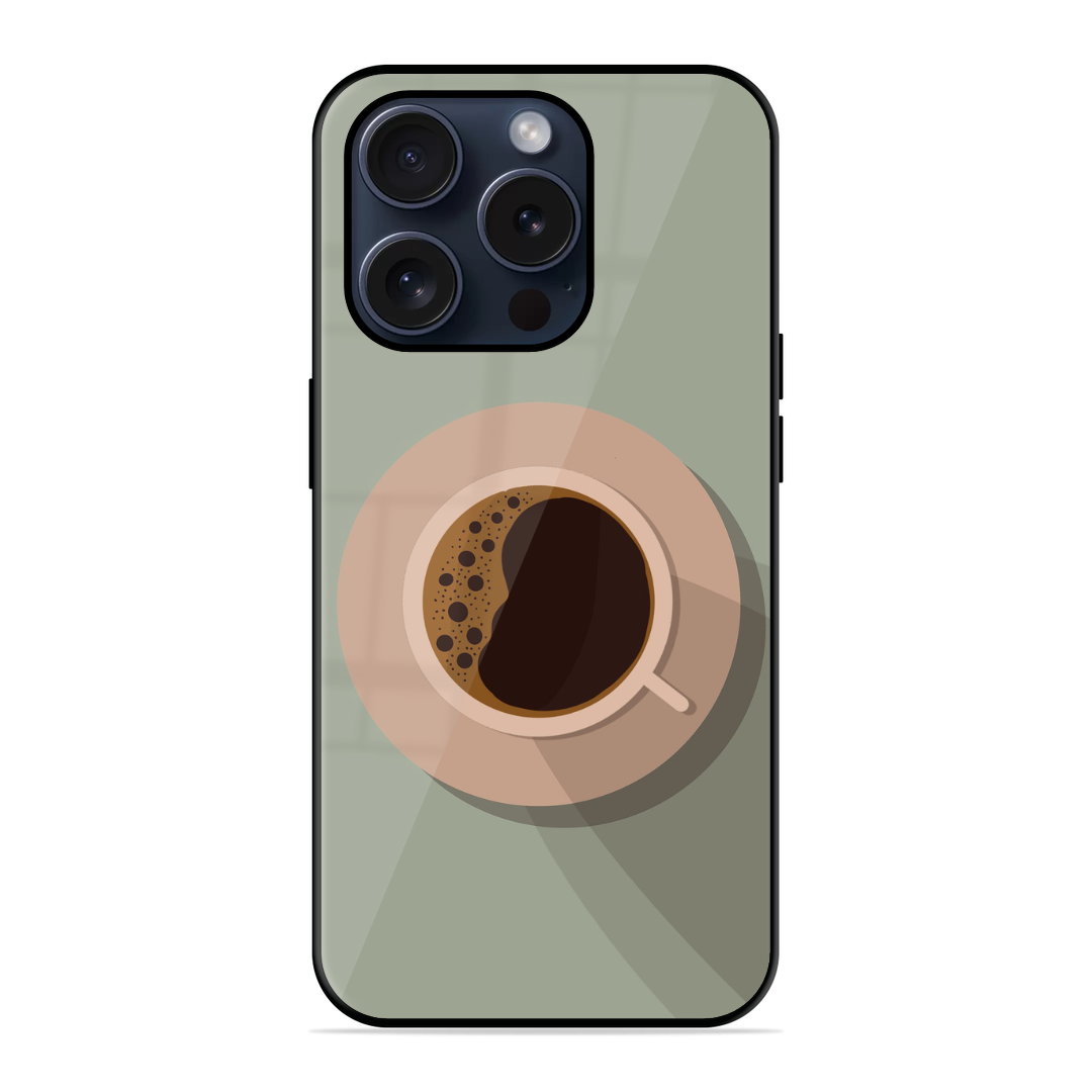 Tempered Glass Coated Metal Back Case for Apple Iphone 15 Pro Max Coffee Time