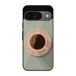 Tempered Glass Coated Metal Back Case for Google Pixel 9 Coffee Time