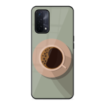 Tempered Glass Coated Metal Back Case for Oppo A74 5G Coffee Time