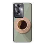 Tempered Glass Coated Metal Back Case for Oppo A79 5G Coffee Time
