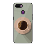 Tempered Glass Coated Metal Back Case for Oppo F9 Pro Coffee Time