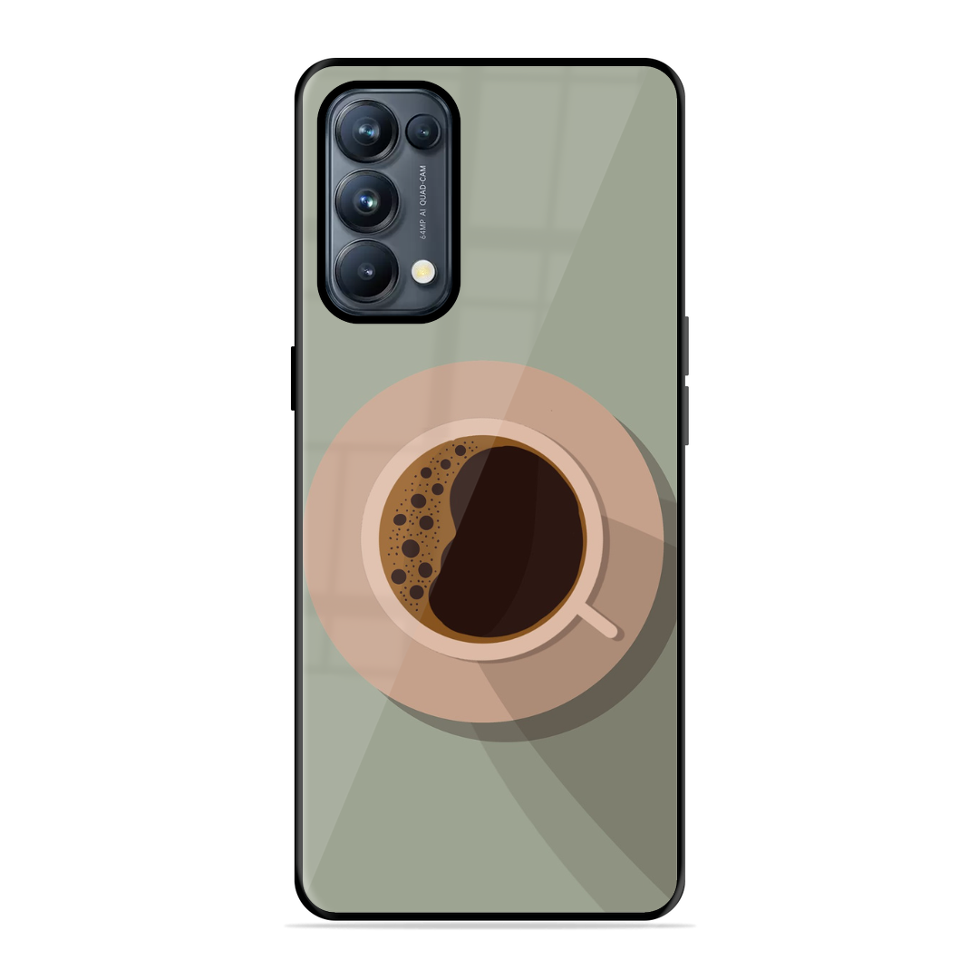 Tempered Glass Coated Metal Back Case for Oppo Reno 5 Coffee Time