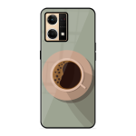 Tempered Glass Coated Metal Back Case for Oppo Reno 7 4G Coffee Time
