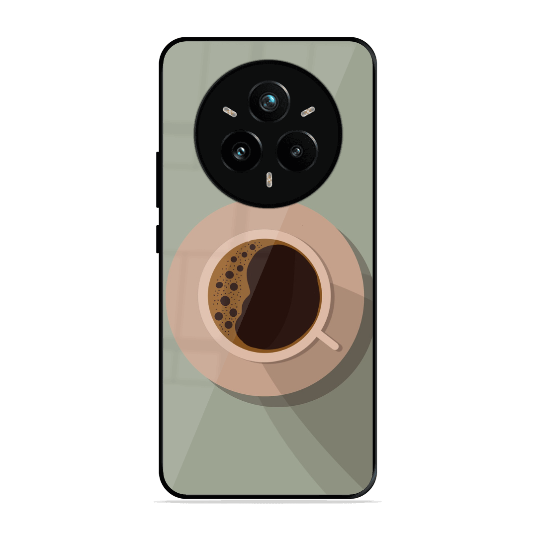 Tempered Glass Coated Metal Back Case for Realme 14 Pro 5G Coffee Time