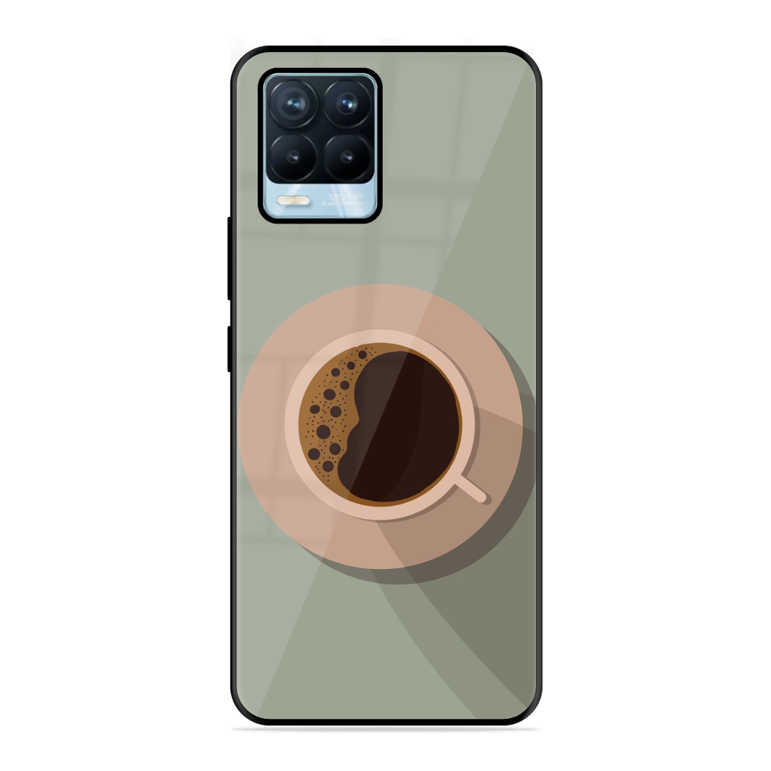 Tempered Glass Coated Metal Back Case for Realme 8 Pro Coffee Time