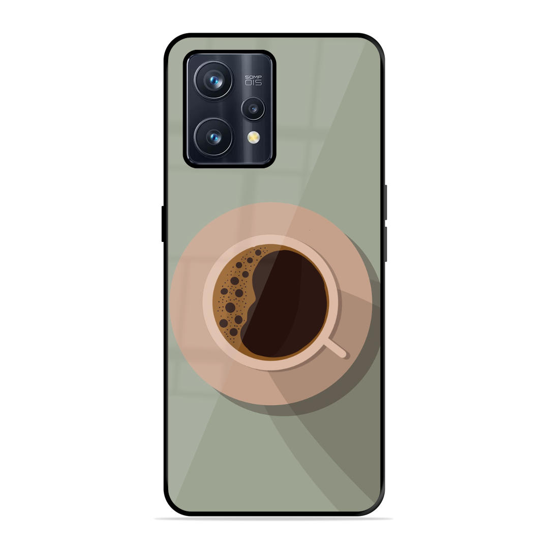 Tempered Glass Coated Metal Back Case for Realme 9 Pro Plus 5G Coffee Time