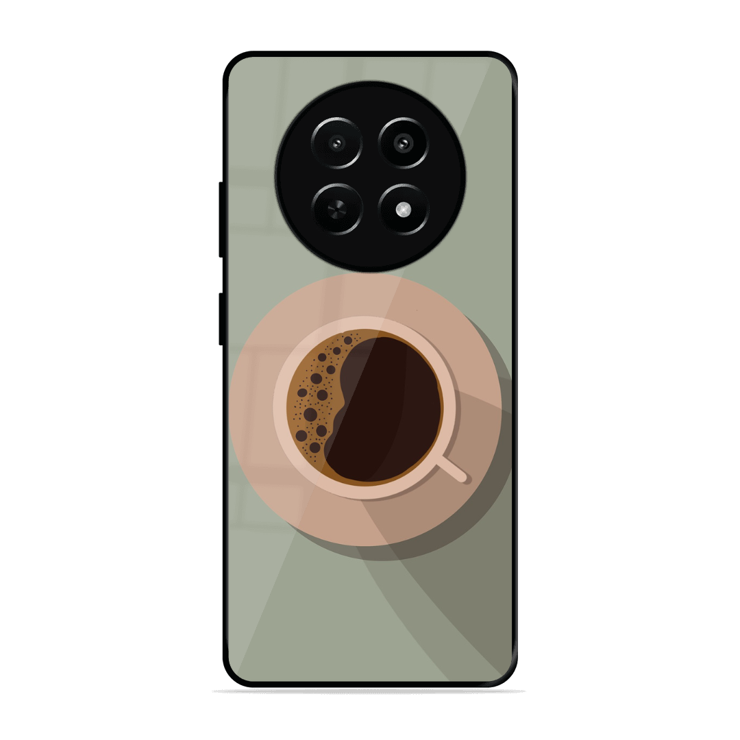 Tempered Glass Coated Metal Back Case for Realme C65 5G Coffee Time