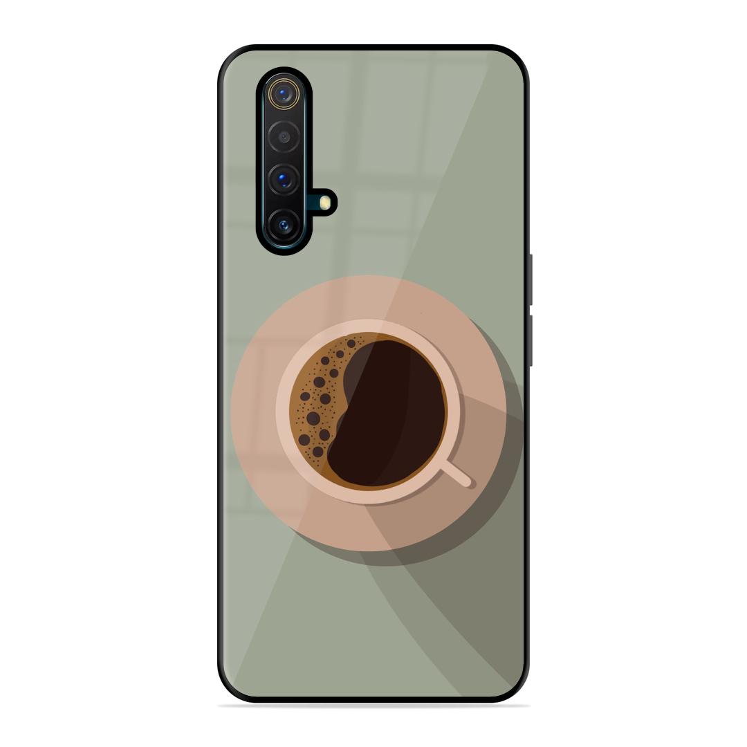 Tempered Glass Coated Metal Back Case for Realme X3 Coffee Time