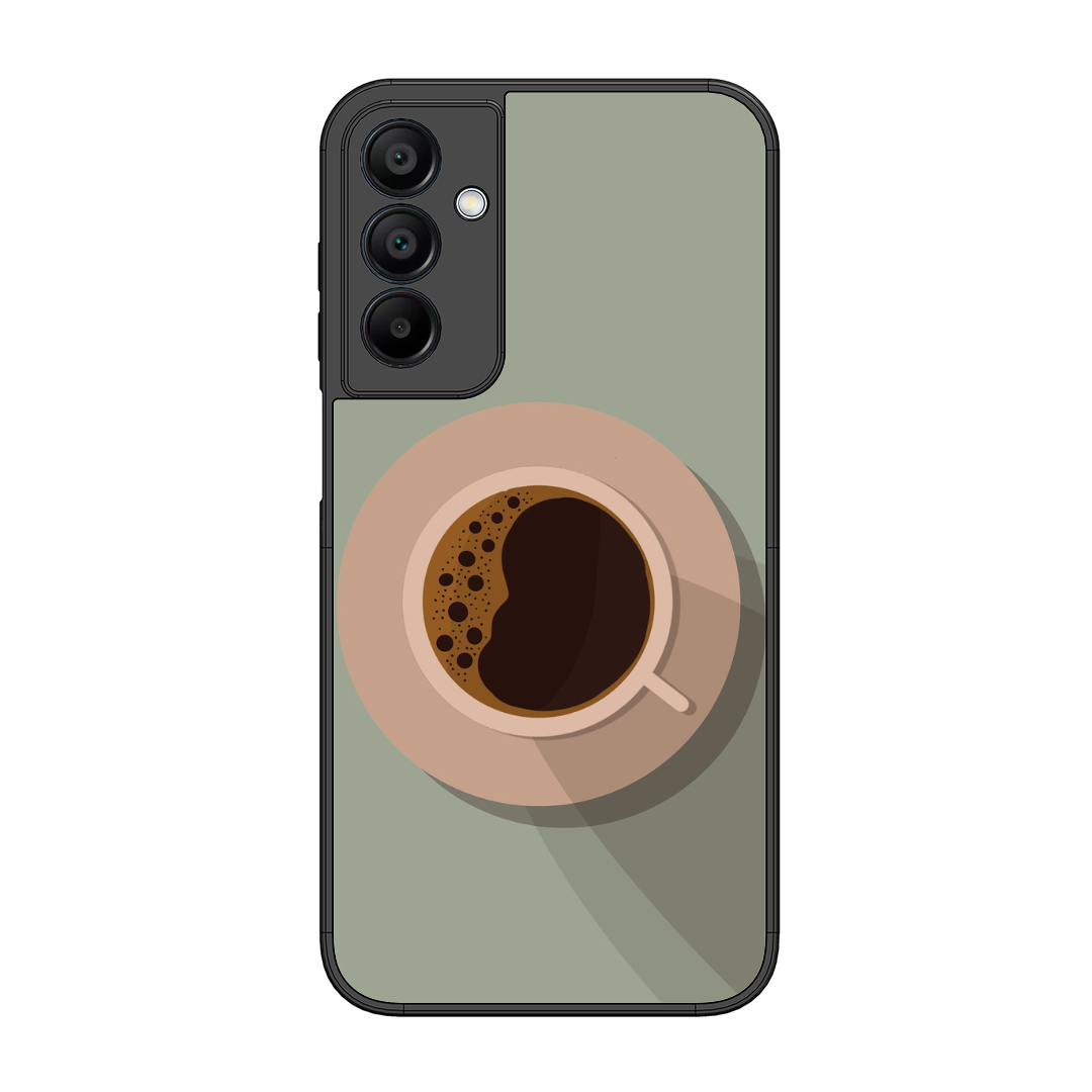 Tempered Glass Coated Metal Back Case for Samsung Galaxy A15 5G Coffee Time