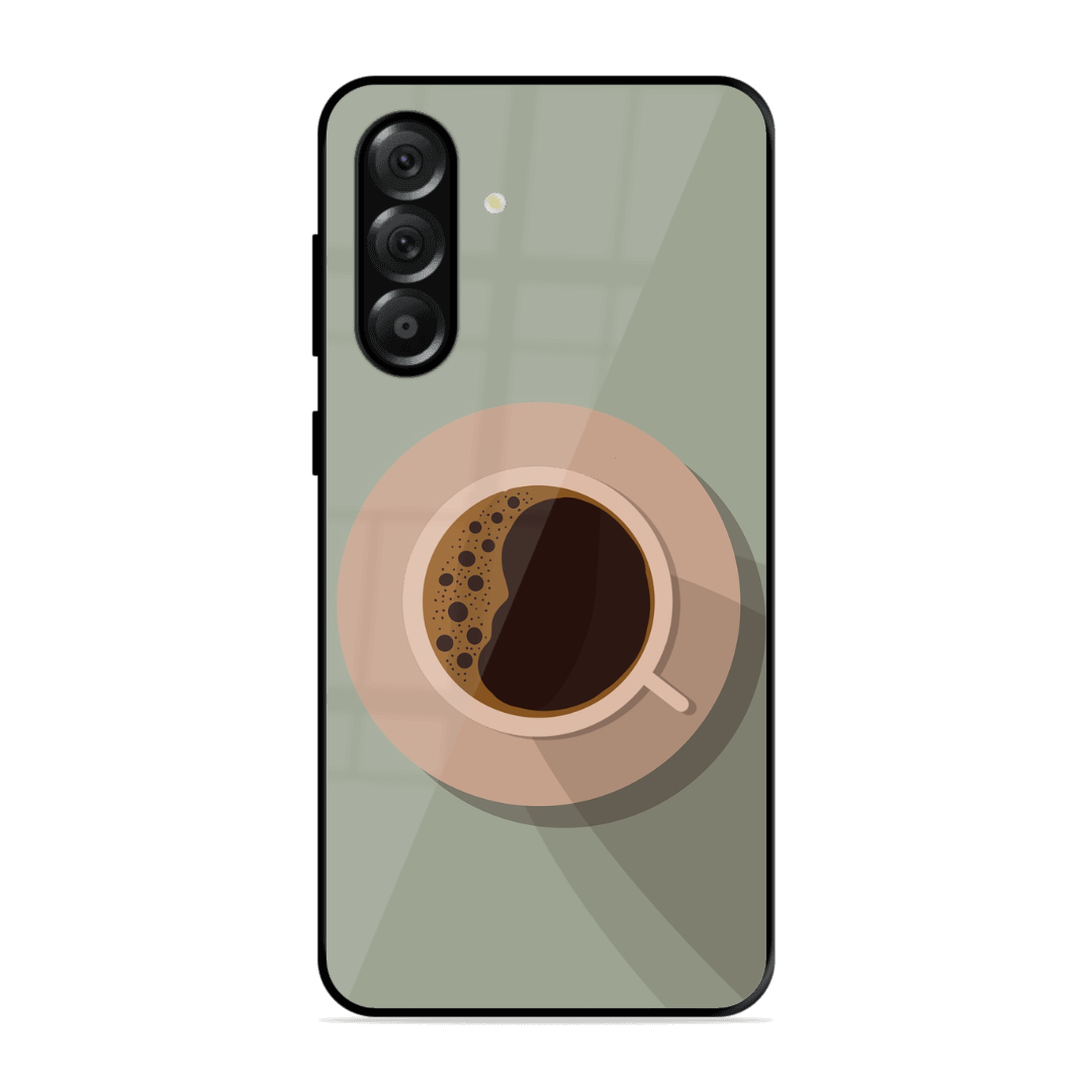 Tempered Glass Coated Metal Back Case for Samsung Galaxy A56 5G Coffee Time