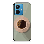 Tempered Glass Coated Metal Back Case for Vivo T1 44W Coffee Time