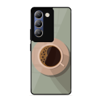 Tempered Glass Coated Metal Back Case for Vivo T3 5G Coffee Time