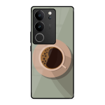 Tempered Glass Coated Metal Back Case for Vivo V29 5G Coffee Time
