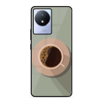 Tempered Glass Coated Metal Back Case for Vivo Y02 Coffee Time