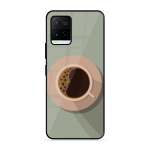 Tempered Glass Coated Metal Back Case for Vivo Y21A Coffee Time