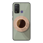 Tempered Glass Coated Metal Back Case for Vivo Y50 Coffee Time