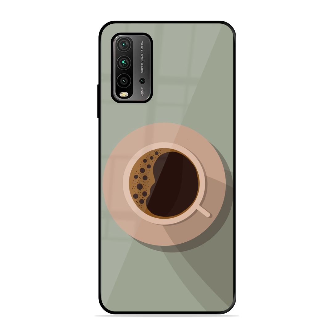 Tempered Glass Coated Metal Back Case for Xiaomi Redmi 9 Power Coffee Time