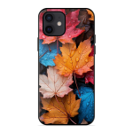 Tempered Glass Coated Metal Back Case for Apple Iphone 12 Colourfull Leaves