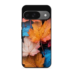 Tempered Glass Coated Metal Back Case for Google Pixel 9 Colourfull Leaves
