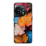 Tempered Glass Coated Metal Back Case for Oneplus 11 5G Colourfull Leaves
