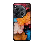 Tempered Glass Coated Metal Back Case for Oneplus 12 5G Colourfull Leaves