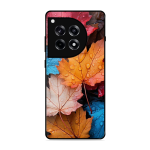 Tempered Glass Coated Metal Back Case for Oneplus 12R 5G Colourfull Leaves