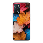 Tempered Glass Coated Metal Back Case for Oppo A16 Colourfull Leaves