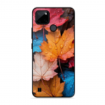 Tempered Glass Coated Metal Back Case for Realme C21Y Colourfull Leaves