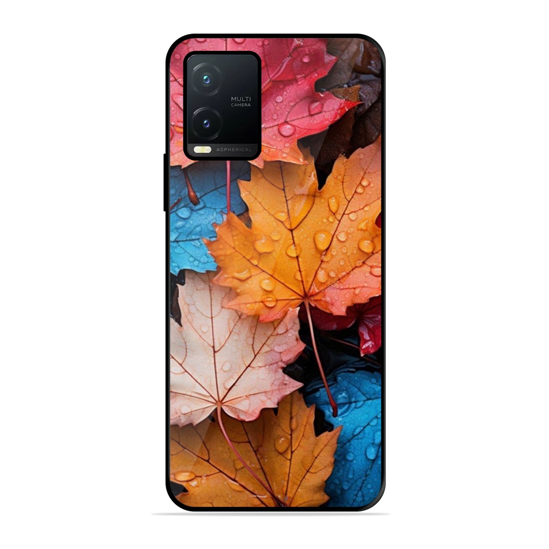 Tempered Glass Coated Metal Back Case for Vivo-T1X Colourfull Leaves