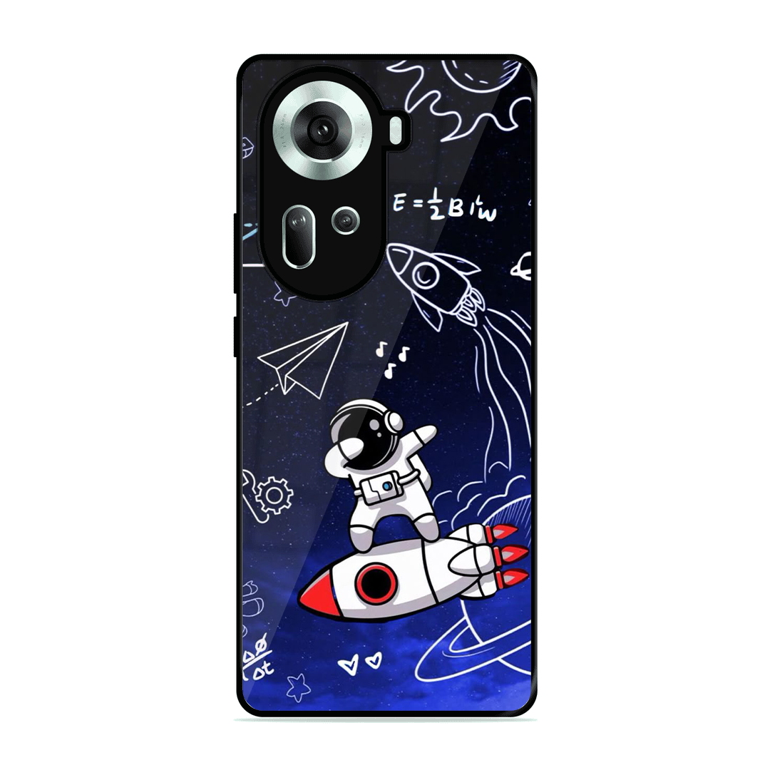 Tempered Glass Coated Metal Back Case for Oppo Reno 11 5G Cosmology