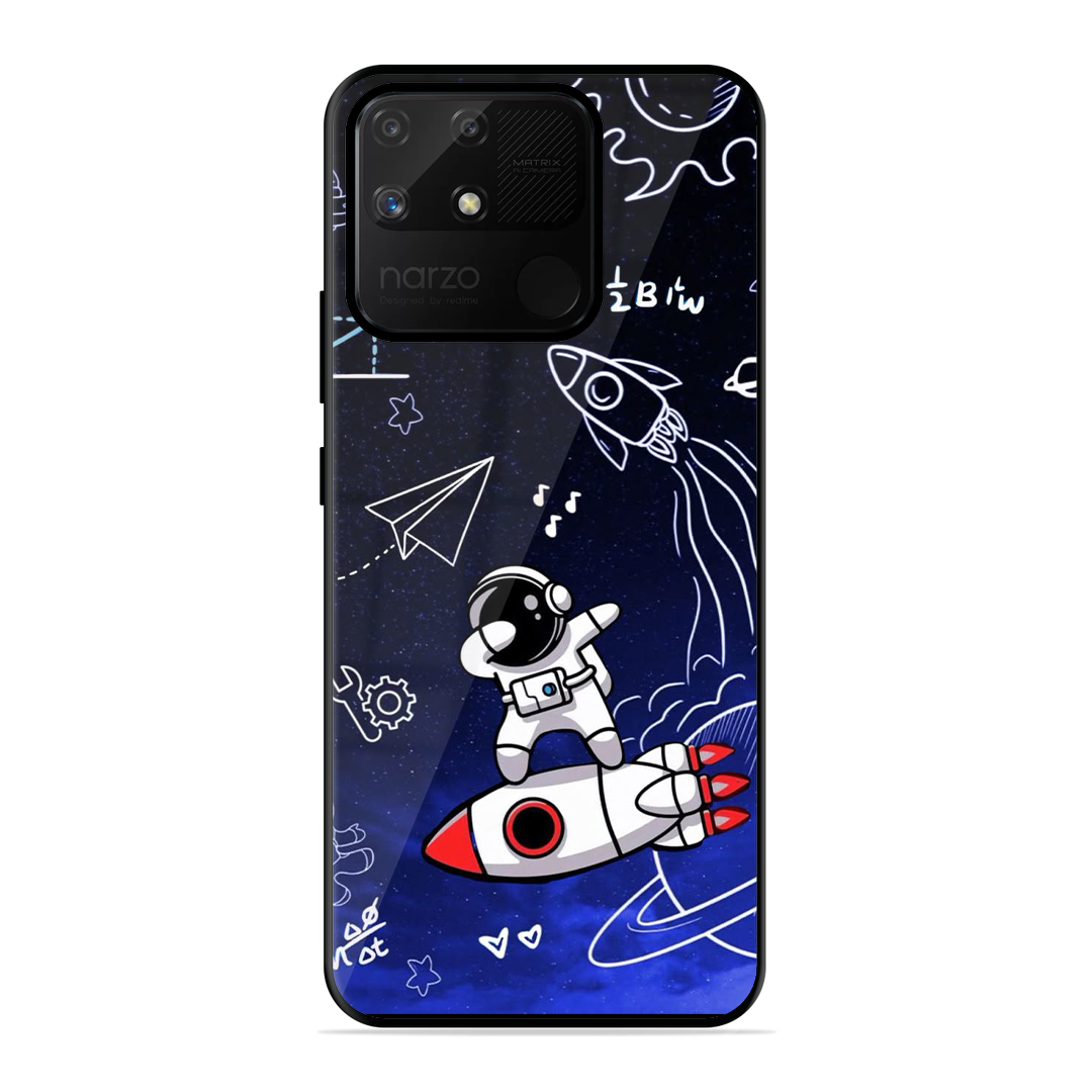 Tempered Glass Coated Metal Back Case for Realme Narzo 50A Cosmology
