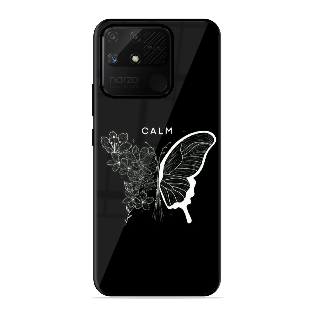 Tempered Glass Coated Metal Back Case for Realme Narzo 50A Creature Of Calmness