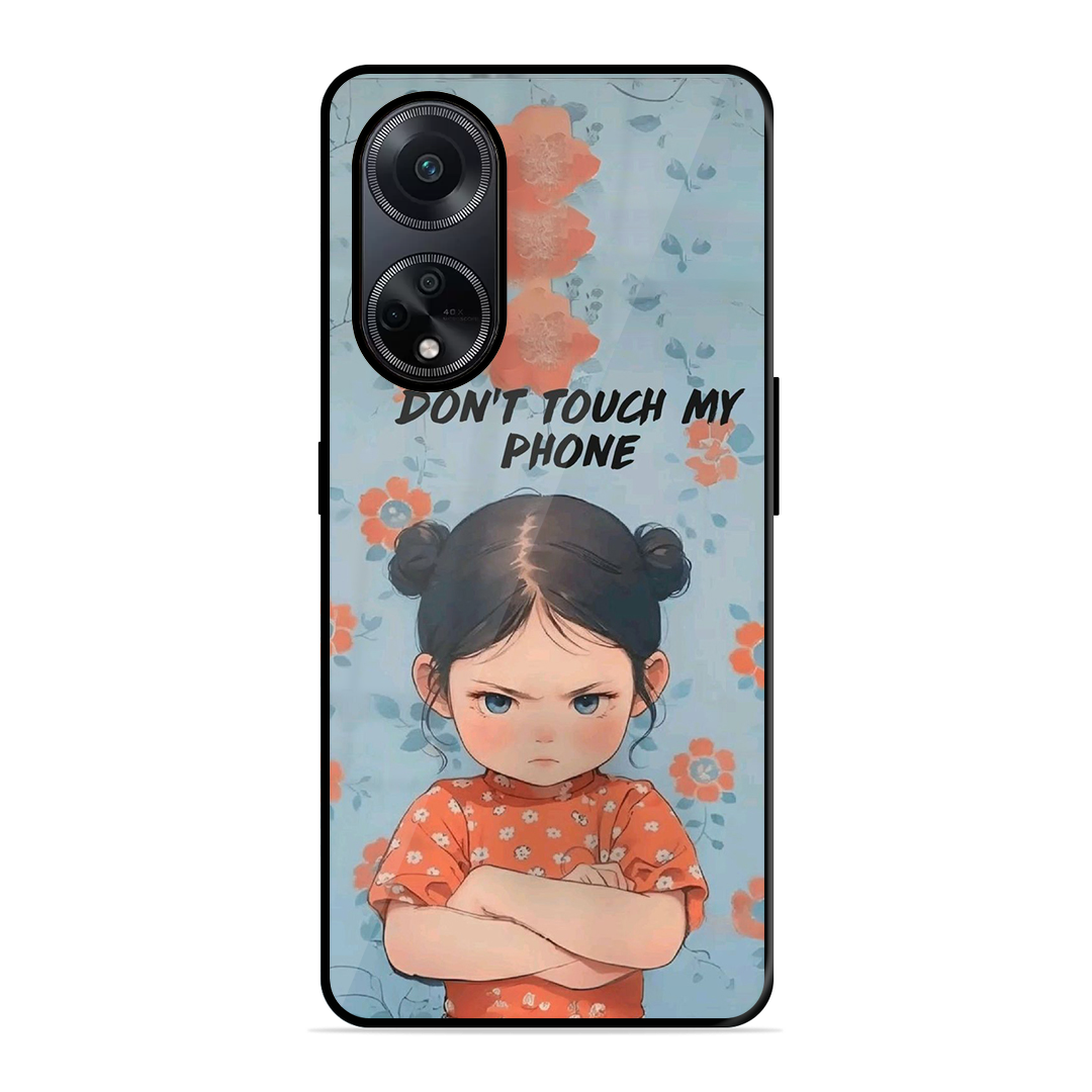 Tempered Glass Coated Metal Back Case for Oppo F23 5G Cute Little Angry Girl