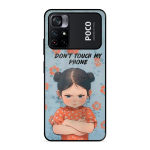 Tempered Glass Coated Metal Back Case for Poco M4 Pro 5G Cute Little Angry Girl