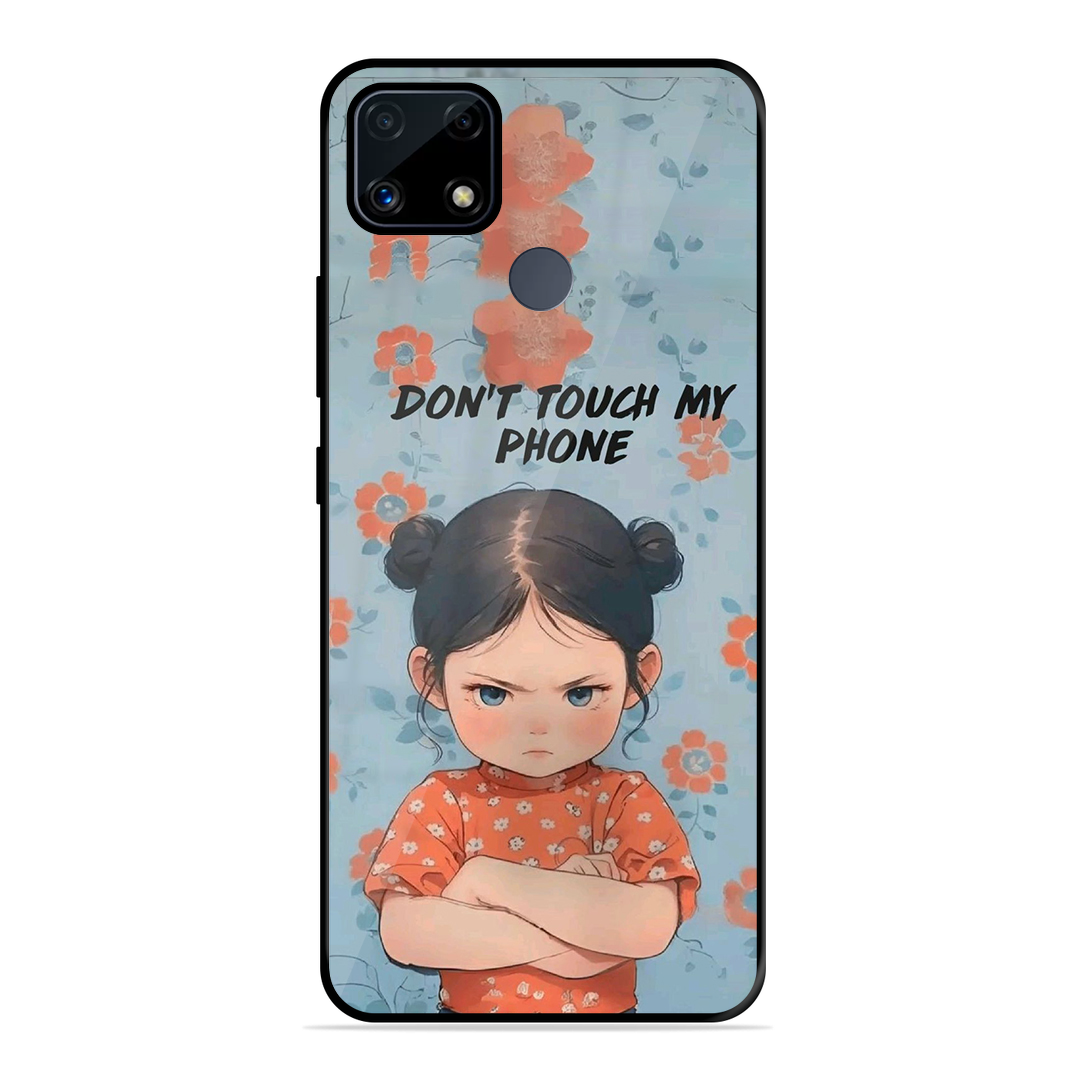 Tempered Glass Coated Metal Back Case for Realme C25S Cute Little Angry Girl