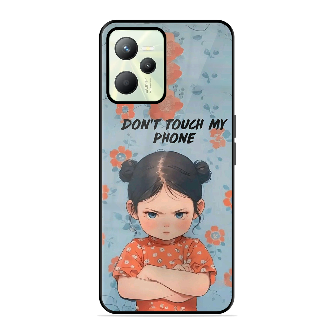 Tempered Glass Coated Metal Back Case for Realme C35 Cute Little Angry Girl