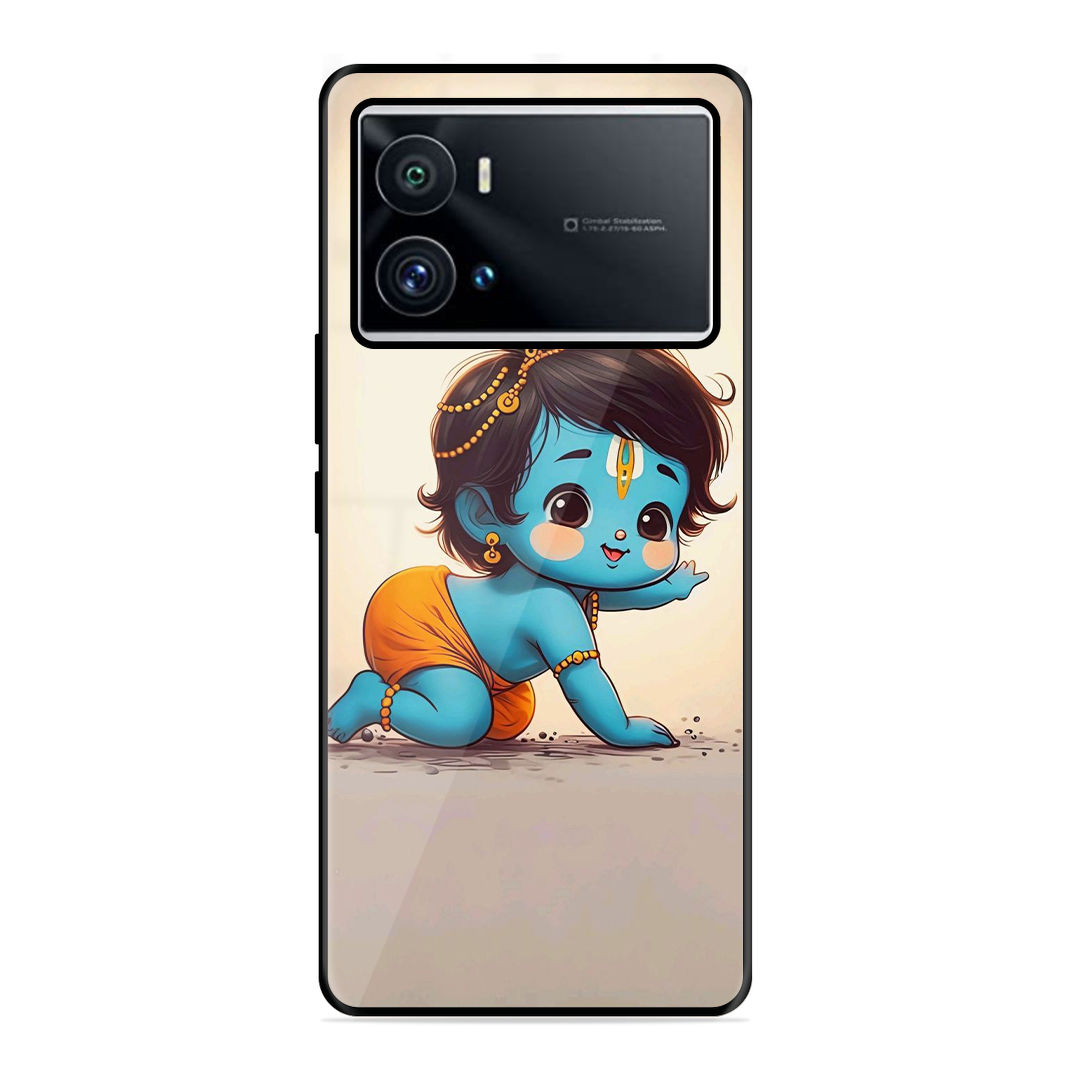 Tempered Glass Coated Metal Back Case for Iqoo 9 Pro Cute Little Shree Krishna