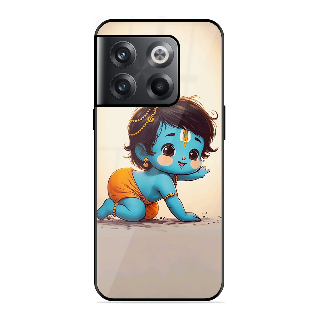 Tempered Glass Coated Metal Back Case for Oneplus 10T 5G Cute Little Shree Krishna