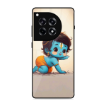 Tempered Glass Coated Metal Back Case for Oneplus 12R 5G Cute Little Shree Krishna